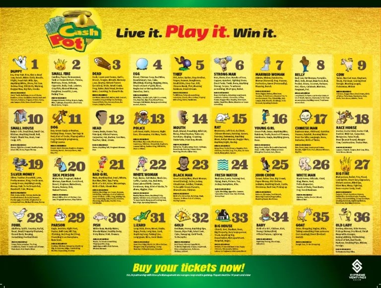 Jamaica Cash Pot Game With Number Meaning Charts Wah Deh Gwaan
