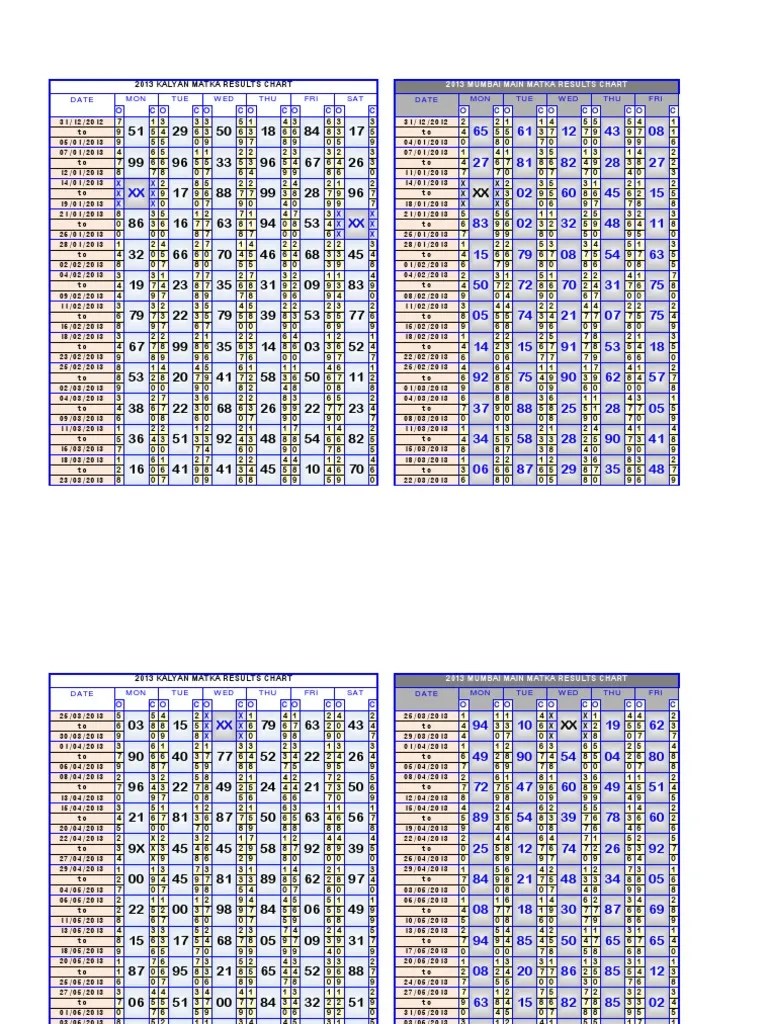 139898868 Satta Matka Result Chart Year 2013 Kalyan Mumbai Main Till 07092013
