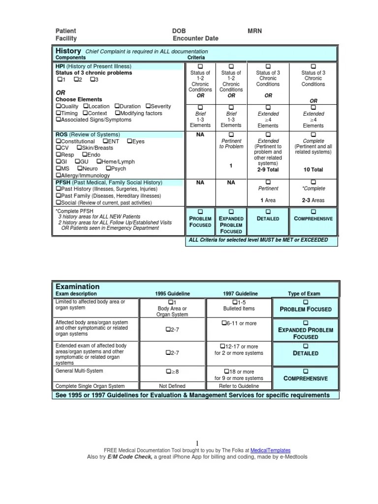 Printable Evaluation And Management Coding Cheat Sheet